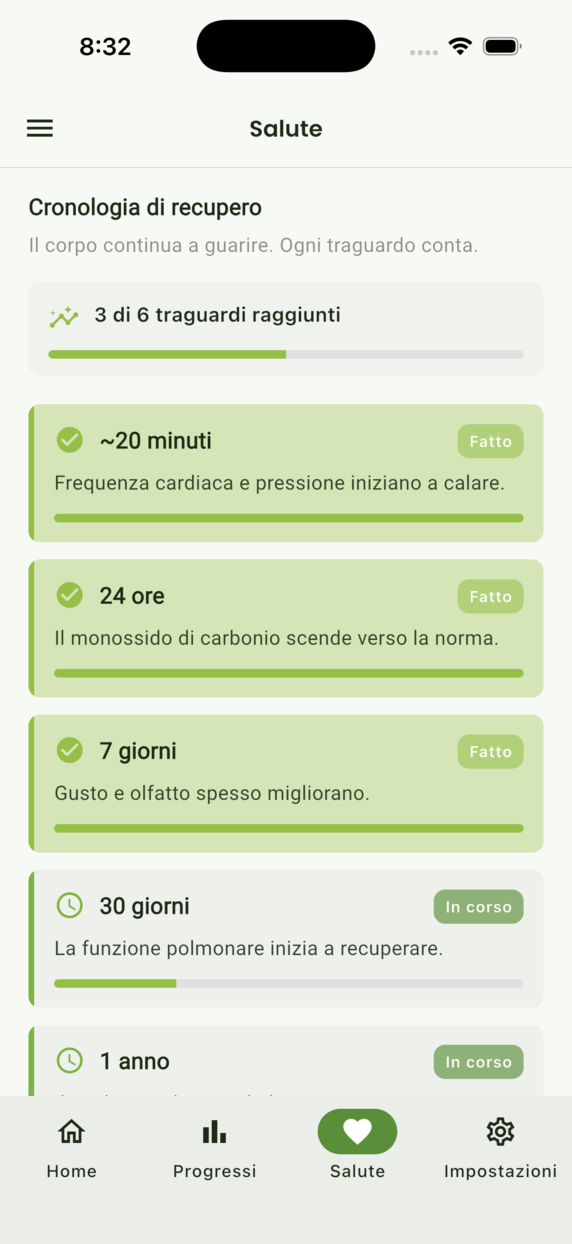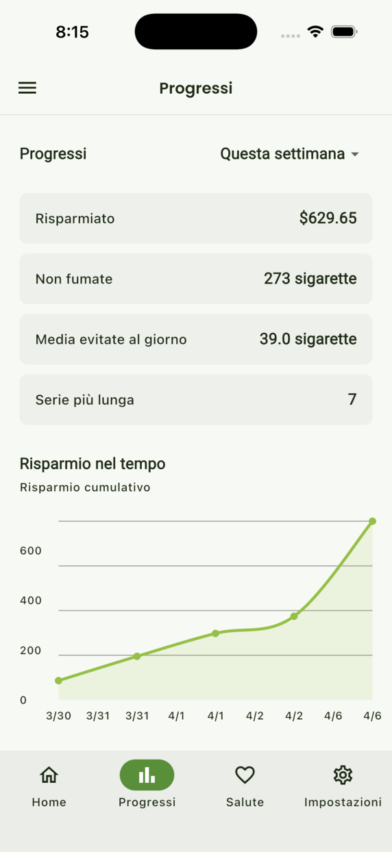 Traccia la serie, supera le voglie, guarda risparmi e recupero — strumenti e Premium opzionale.