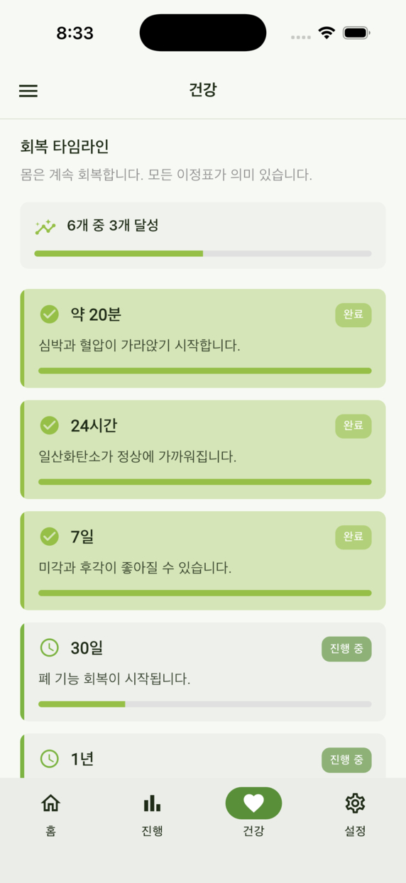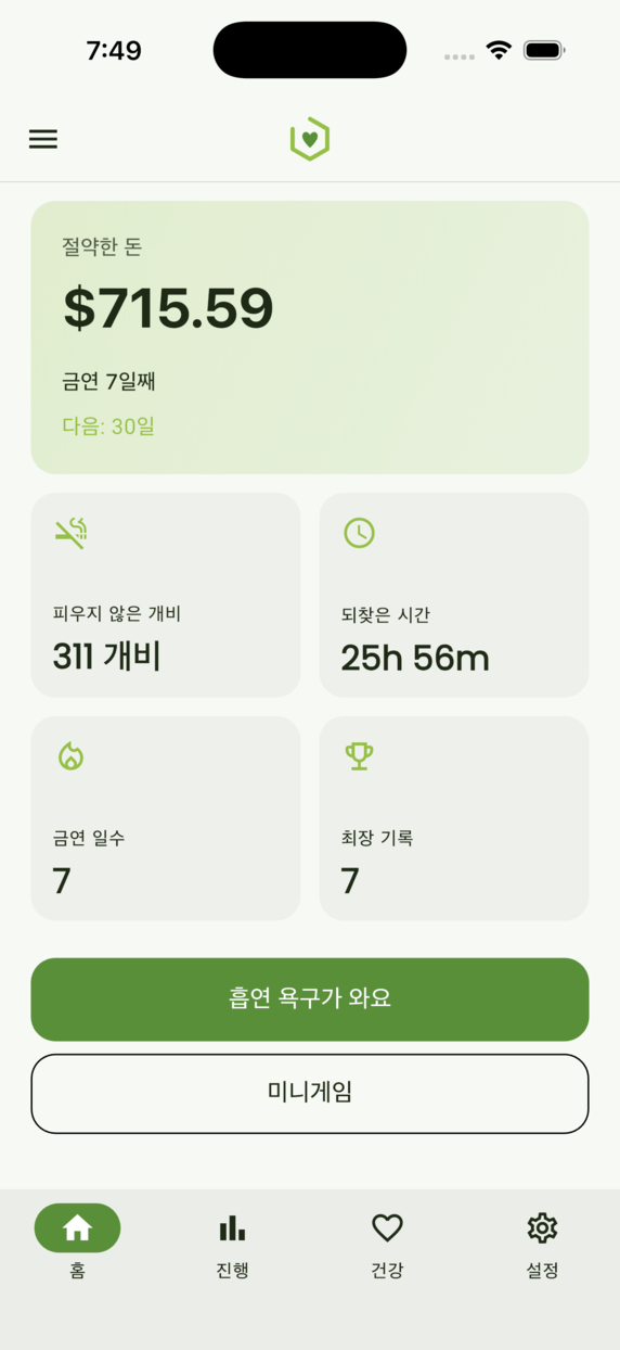 금연 시계, 갈망 도구, 절약 추적을 한곳에서