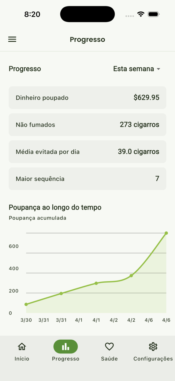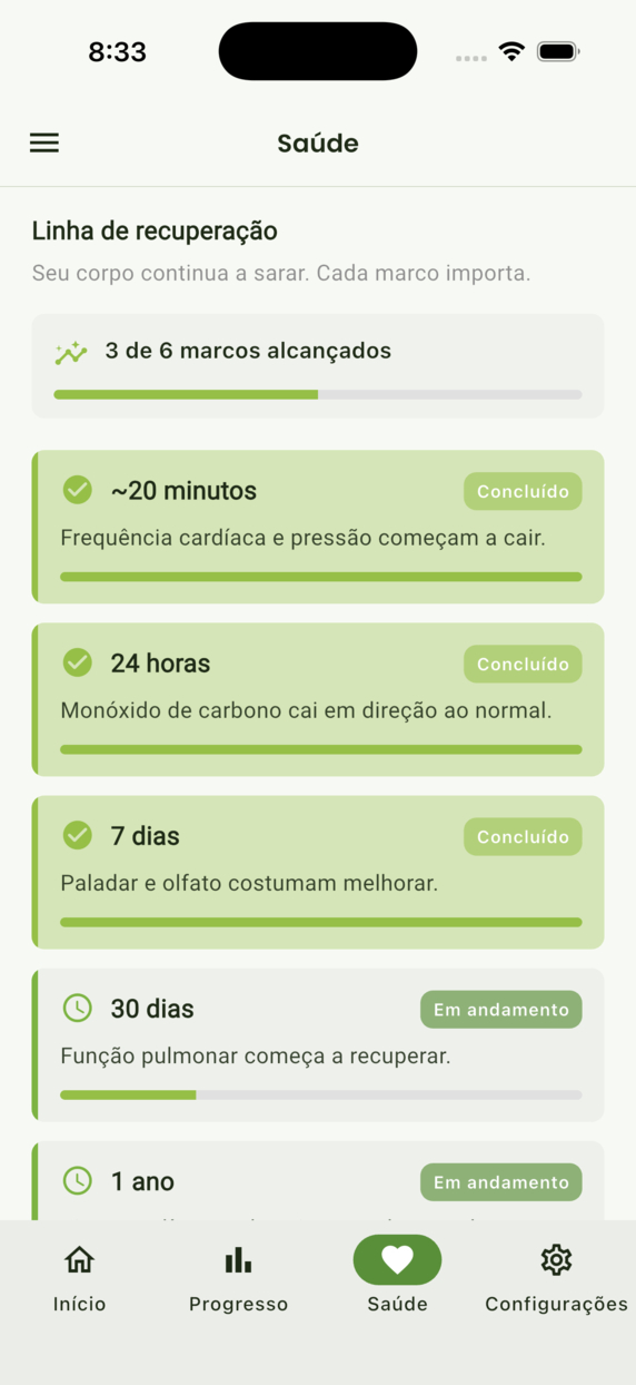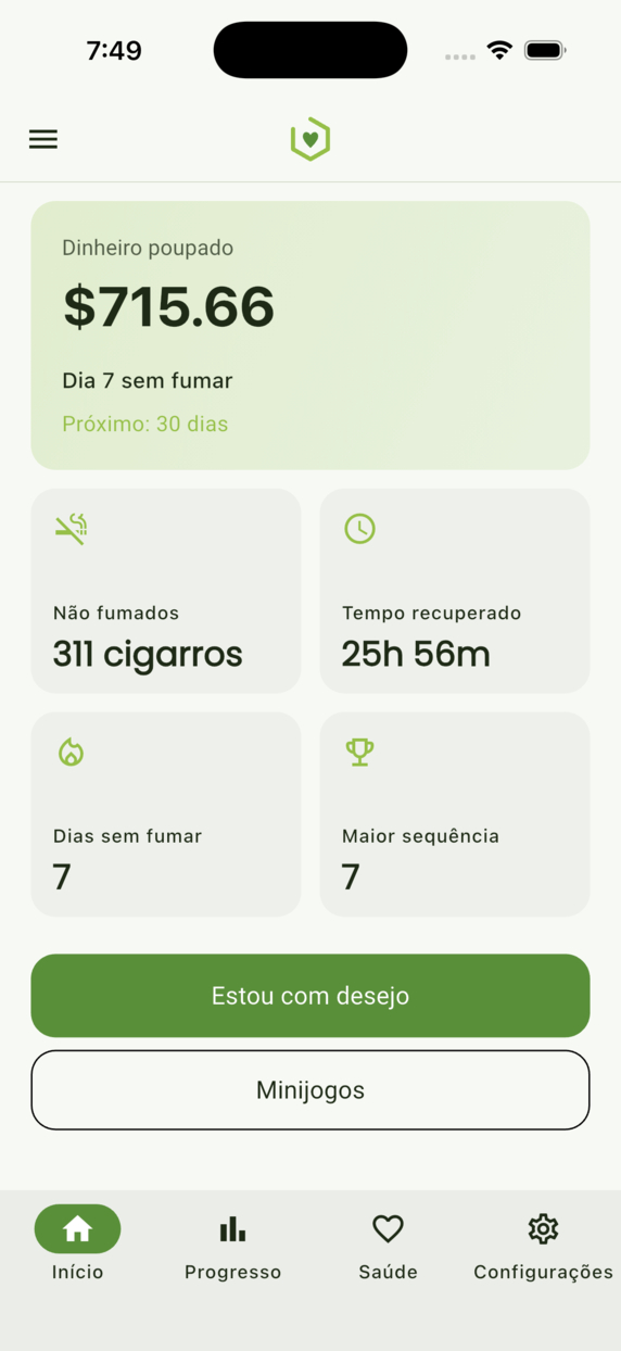 Marca o momento e vê o tempo sem fumo crescer.